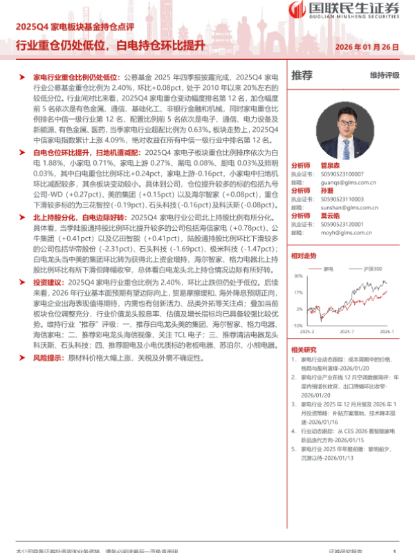 【国联民生证券】【202601】2025Q4家电行业板块基金持仓点评:行业重仓仍处低位,白电持仓环比提升-13页 证券期货研究报告