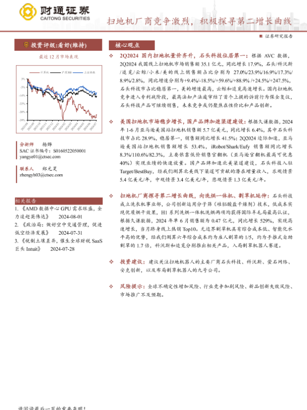 【财通证券】【20240801】计算机行业深度分析报告:扫地机厂商竞争激烈,积极探寻第二增长曲线-22页 行业研究