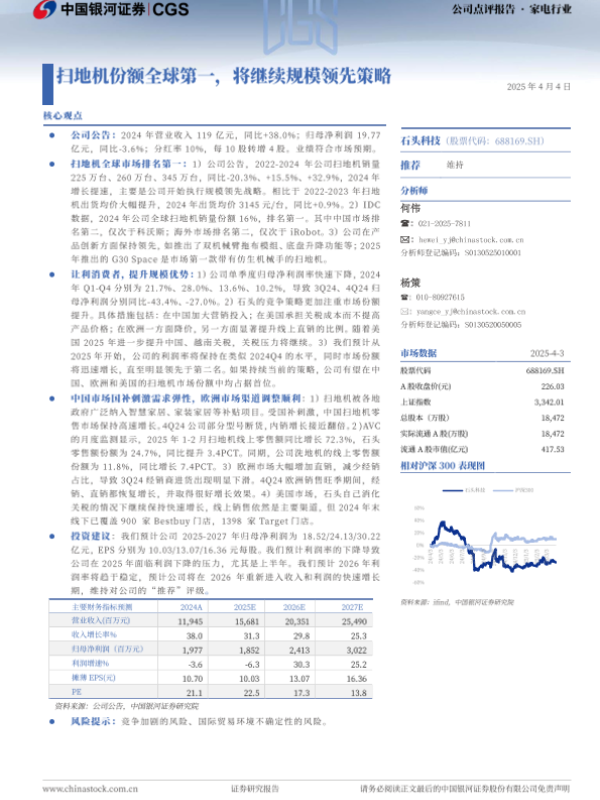 【银河证券】【20250404】石头科技扫地机份额全球第一,将继续规模领先策略-12页 公司研究