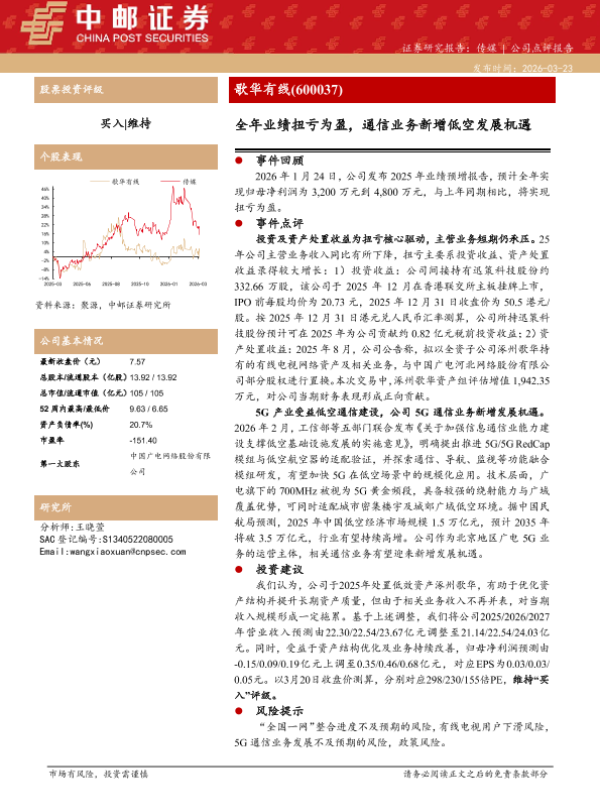【中邮证券】【202603】全年业绩扭亏为盈,通信业务新增低空发展机遇-5页 证券期货研究报告