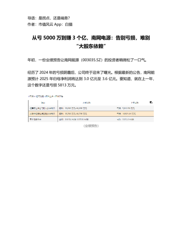 【市值风云 App】【2025】从亏5000万到赚3个亿,南网电源:告别亏损,难别“大股东依赖”-12页 公司研究