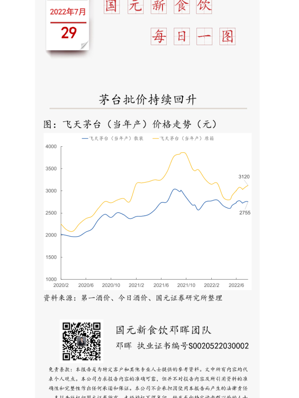 【国元证券】【20220729】国元新食饮每日一图:茅台批价持续回升-1页 行业研究