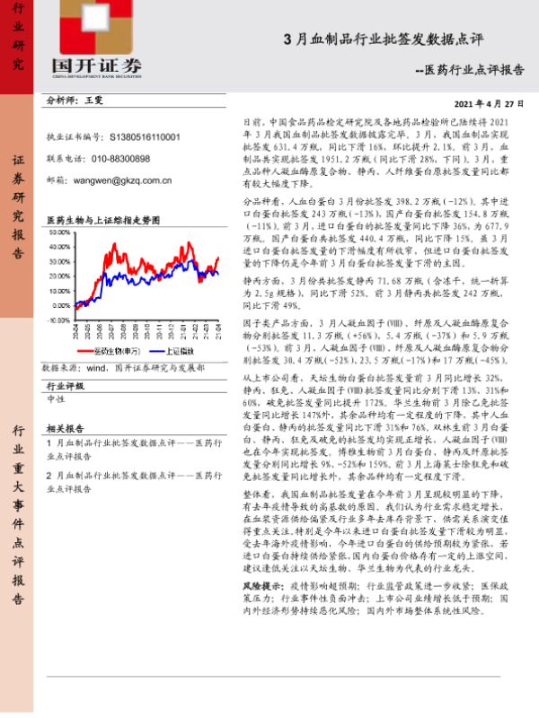 【国开证券】【20210427】3月血制品行业批签发数据点评-5页 行业研究