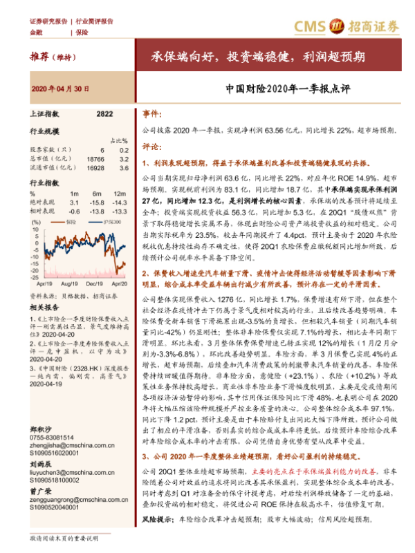 【海通证券】【20200430】中国财险2020年一季报点评-2页 证券期货研究报告