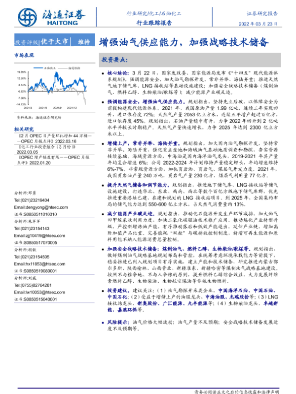 【海通证券】【20220323】石油化工行业跟踪报告:增强油气供应能力,加强战略技术储备-2页 行业研究