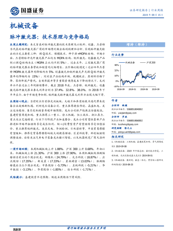 【国盛证券】【20190915】机械设备行业周报:脉冲激光器:技术原理与竞争格局-22页 行业研究