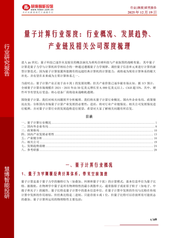 【慧博智能投研】【202512】量子计算行业深度:行业概况、发展趋势、 产业链及相关公司深度梳理-28页 行业研究
