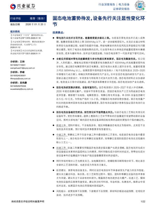 【兴业证券】【202601】固态电池蓄势待发,设备先行关注显性变化环节-22页 证券期货研究报告
