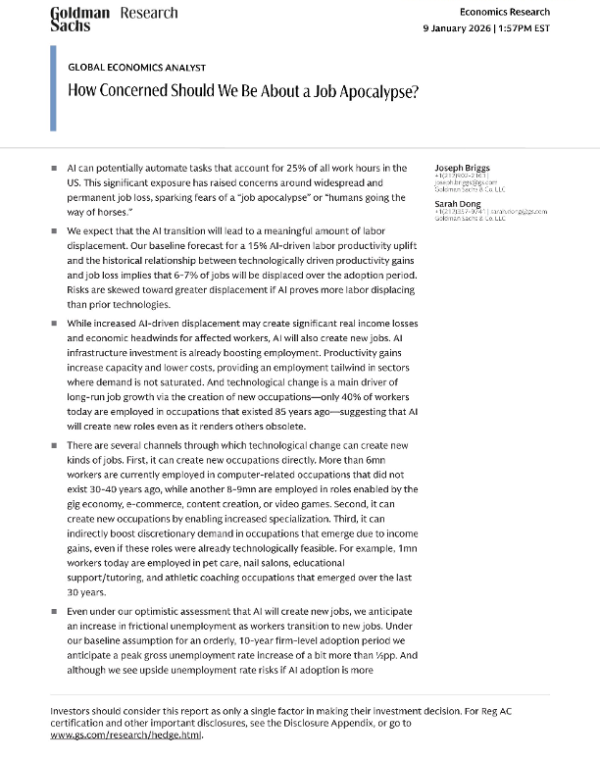 【Goldman Sachs】【202601】How Concerned Should We Be About a Job Apocalypse?-14页 证券期货研究报告