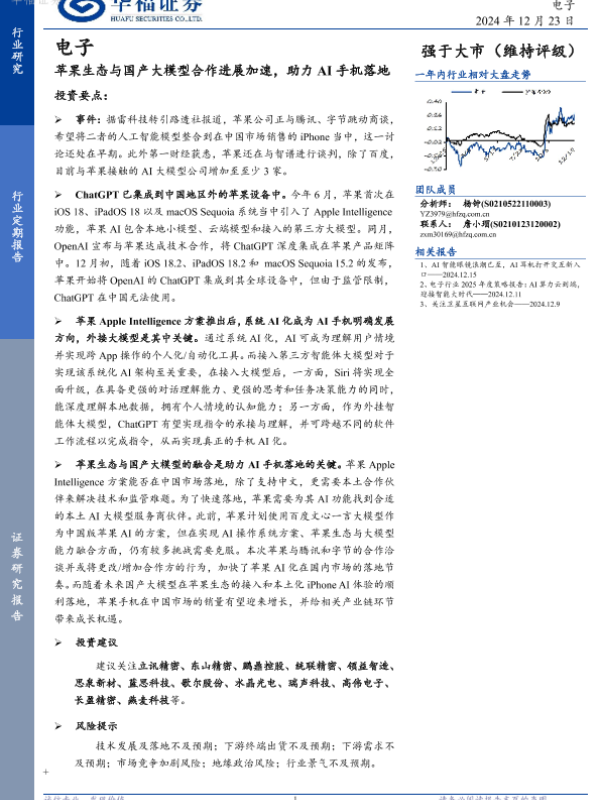 【华福证券】【20241223】苹果生态与国产大模型合作进展加速,助力AI手机落地-12页 行业研究