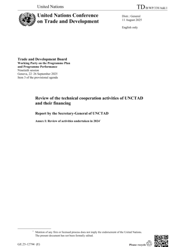 【联合国贸易和发展会议 (UNCTAD)】【202508】审查贸发会议的技术合作活动及其资金筹发情况-173页 政策文件