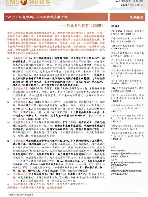 【海通证券】【20230308】行业景气观察:1_2月出口超预期,化工品价格多数上涨-26页 行业研究