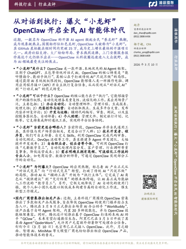 【浦银国际】【202603】从对话到执行:爆火“小龙虾”OpenClaw开启全民 AI智能体时代-4页 证券期货研究报告