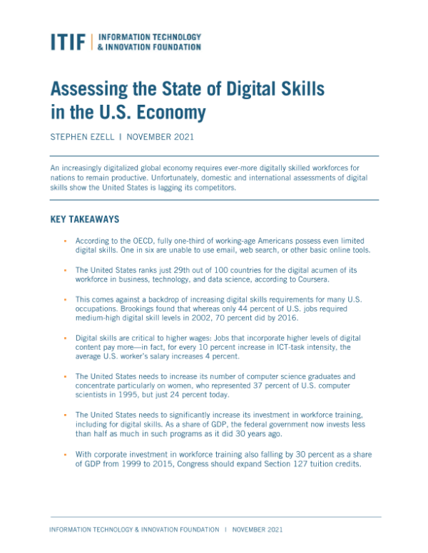 【INFORMATION TECHNOLOGY & INNOVATION FOUNDATION】【202111】评估美国经济中的数字技能状况-32页 行业研究
