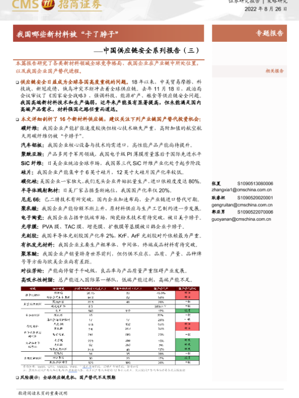 【海通证券】【20220826】中国供应链安全系列报告(三):我国哪些新材料被“卡了脖子”-49页 行业研究