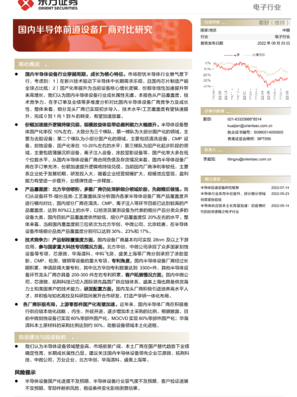 【东方证券】【20220803】2022-08-04-电子行业深度报告-国内半导体前道设备厂商对比研究-26页 行业研究