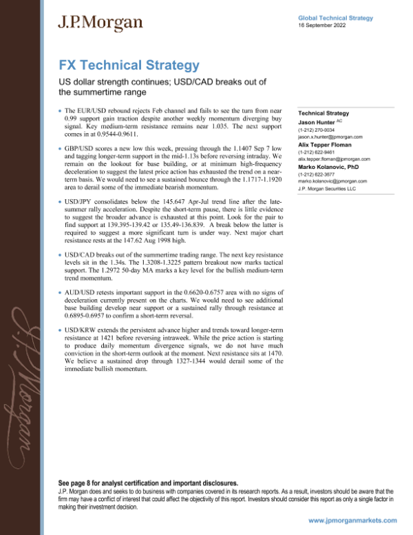 【J.P. Morgan】【20220916】US dollar strength continues; USD/CAD breaks out of the summertime range-12页 行业研究