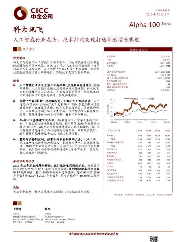【中金公司】【20191105】科大讯飞-002230.SZ-人工智能行业龙头,技术红利变现打通高速增长赛道-23页 行业研究