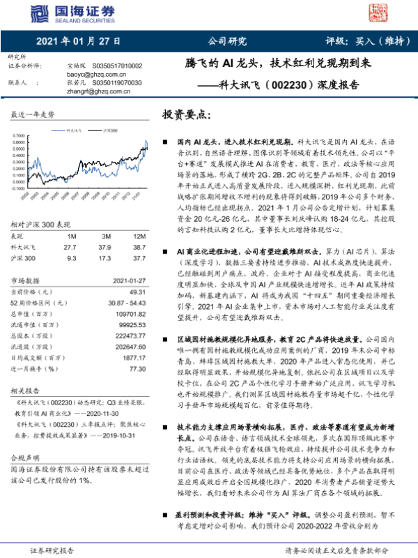 【国海证券】【20210127】腾飞的AI龙头,技术红利兑现期到来——科大讯飞(002230)深度报告-47页 行业研究