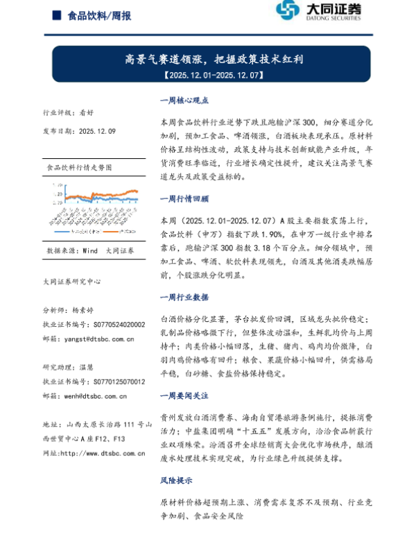 【大同证券】【202512】食品饮料/周报-13页 证券期货研究报告