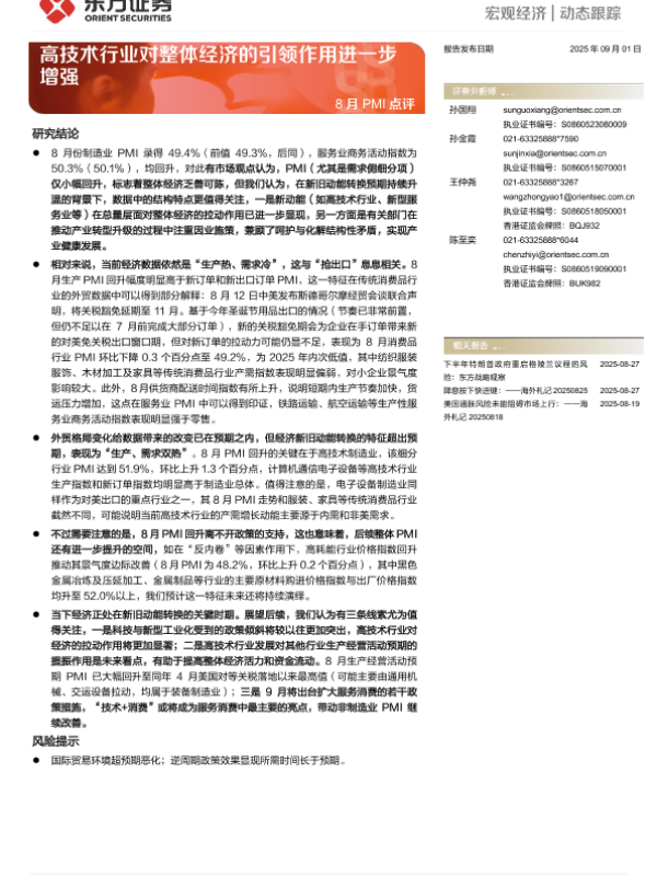 【东方证券】【20250901】高技术行业对整体经济的引领作用进一步增强-8月PMI点评-4页 证券期货研究报告
