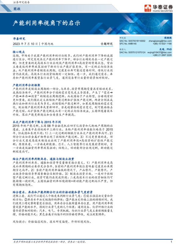 【华泰证券】【20230710】固收专题研究:产能利用率视角下的启示-19页 行业研究