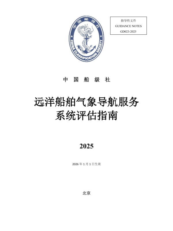 【中国船级社】【2025】远洋船舶气象导航服务系统评估指南-37页 指南