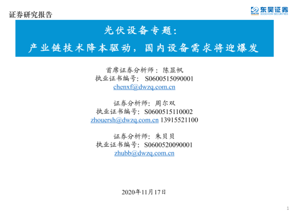 【东吴证券】【20201117】光伏设备专题:产业链技术降本驱动,国内设备需求将迎爆发-91页 行业研究