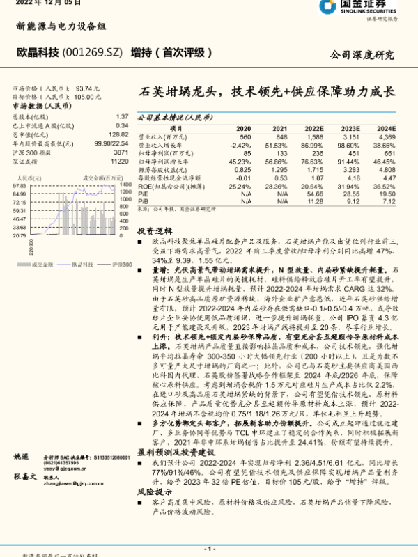 【国金证券】【20221205】欧晶科技-001269.SZ-石英坩埚龙头,技术领先+供应保障助力成长-28页 行业研究
