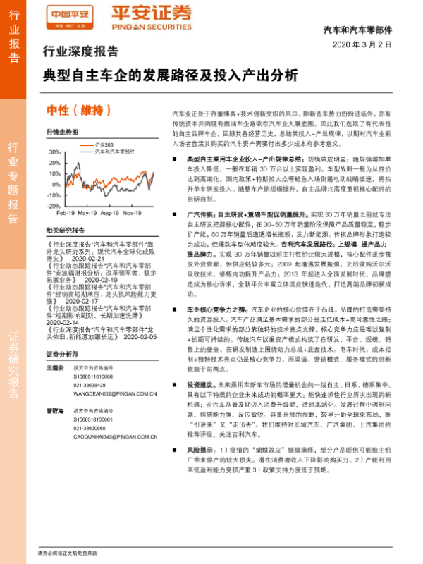 【平安证券】【20200302】汽车和汽车零部件行业深度报告:典型自主车企的发展路径及投入产出分析-19页 行业研究