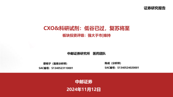 【中邮证券】【20241112】医药行业XO&科研试剂:低谷已过,复苏将至-27页 行业研究