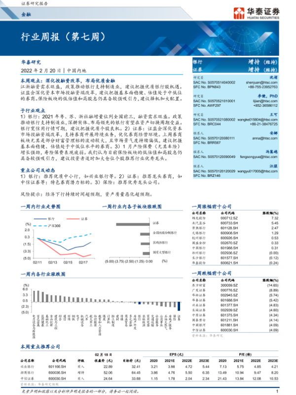 【华泰证券】【20220220】金融行业周报(第七周)-22页 行业研究