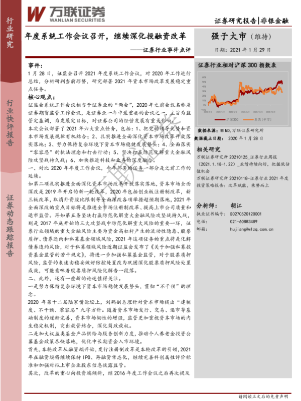 【万联证券】【20210129】证券行业事件点评:年度系统工作会议召开,继续深化投融资改革-3页 行业研究