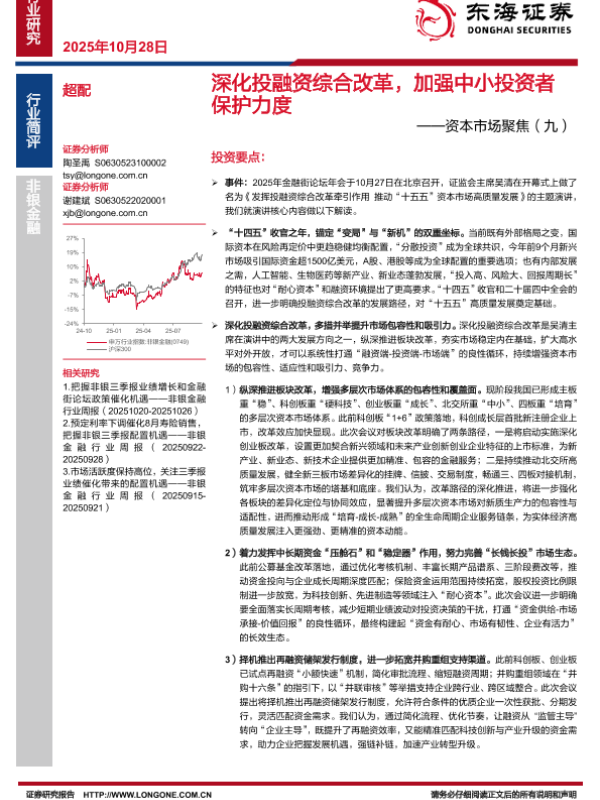 【东海证券】【202510】深化投融资综合改革,加强中小投资者保护力度——资本市场聚焦(九)-3页 证券期货研究报告