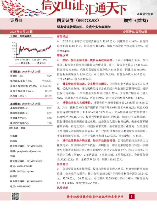 【山西证券】【20250829】国元证券-财富管理转型加速,投资业务大幅增长-5页 证券期货研究报告