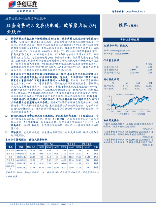 【华创证券】【202603】消费者服务行业深度研究报告:服务消费进入发展快车道,政策聚力助力行业跃升-24页 证券期货研究报告