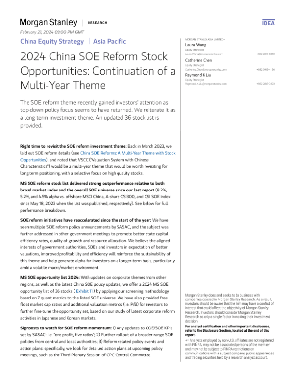 【Morgan Stanley】【20240220】2024年中国国企改革股票机遇:多年主题的延续-28页 行业研究