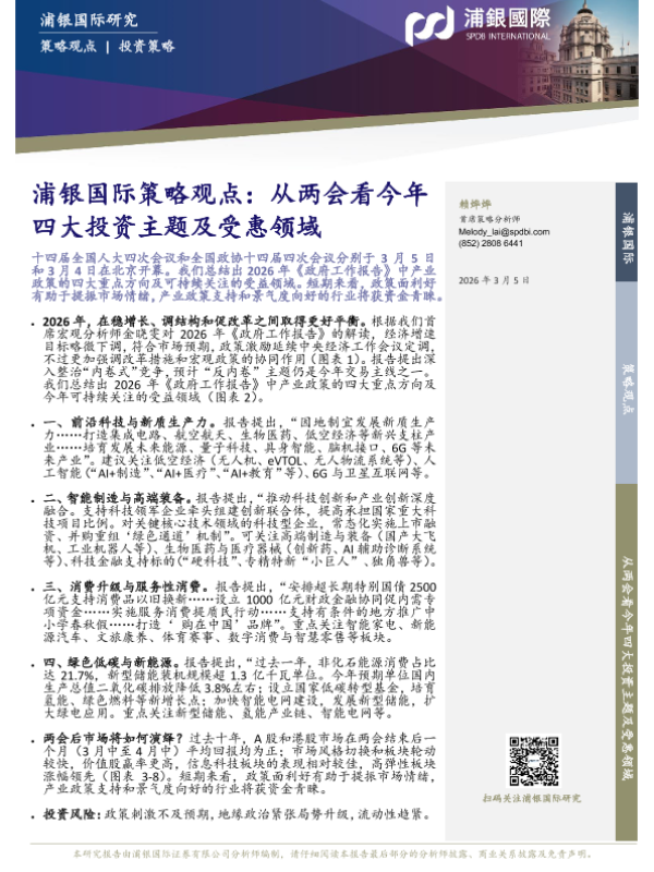 【浦银国际】【202603】浦银国际策略观点:从两会看今年四大投资主题及受惠领域-8页 证券期货研究报告