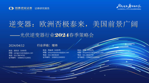 【国泰君安证券】【20240412】光伏逆变器行业2024春季策略会:欧洲否极泰来,美国前景广阔-19页 行业研究