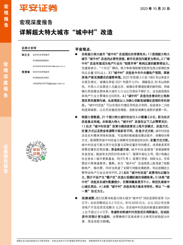 【平安证券】【20231020】宏观深度报告:详解超大特大城市“城中村”改造-16页 宏观策略