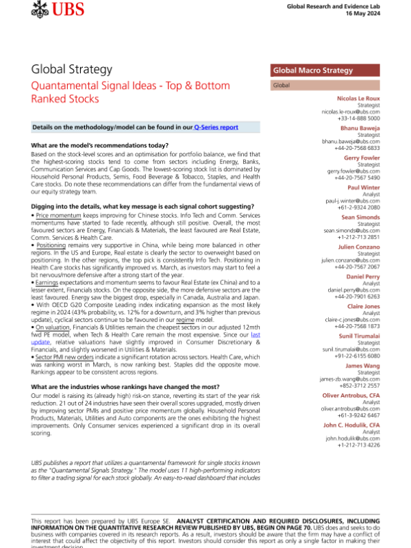 【UBS Europe SE】【20240516】UBS Equities-Global Strategy _Quantamental Signal Ideas - Top & Bottom Ranked Stocks-78页 行业研究