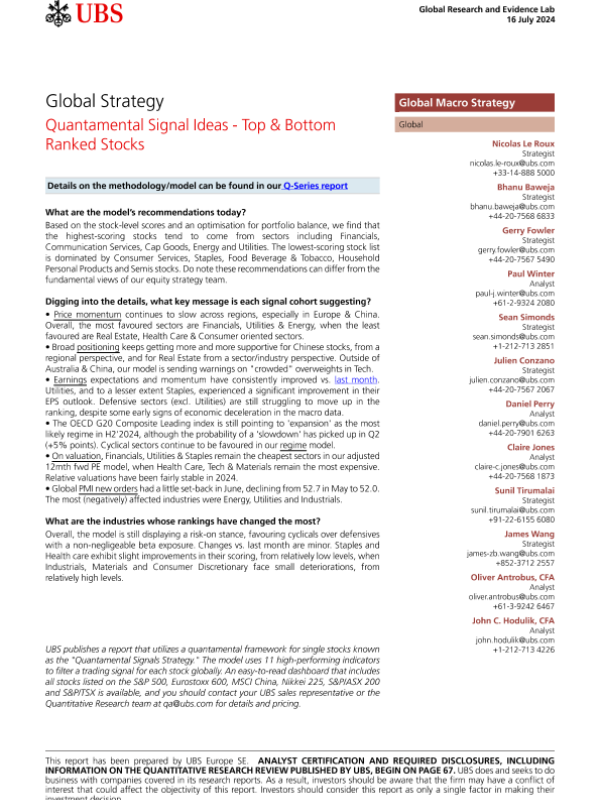 【UBS】【20240716】UBS Equities-Global Strategy Quantamental Signal Ideas - Top & Bottom Ranked Stocks-80页 行业研究
