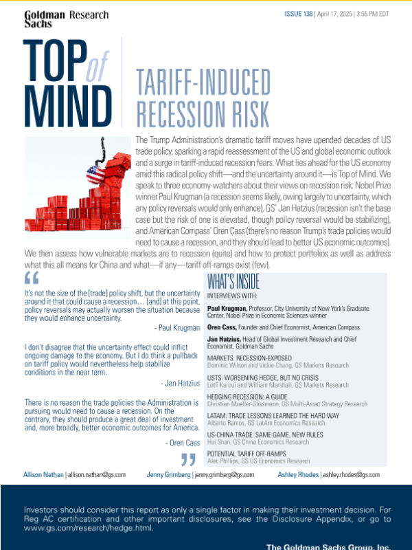 【Goldman Sachs】【20250417】关税引发衰退的风险研究-28页 宏观策略