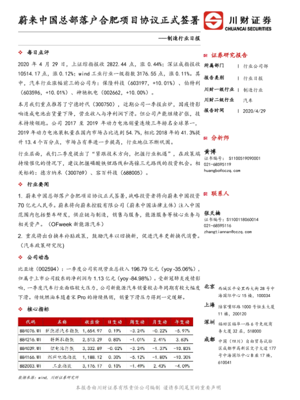 【川财证券】【20200429】制造行业日报:蔚来中国总部落户合肥项目协议正式签署-3页 证券期货研究报告