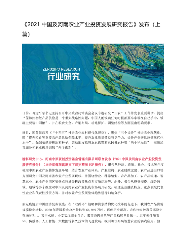 【清科研究中心】【20220113】2021中国及河南农业产业投资发展研究报告(上篇)-12页 行业研究