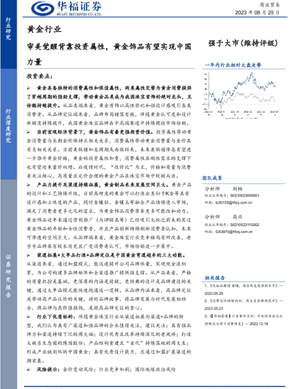 【华福证券】【20230825】华福证券:黄金行业-审美觉醒背靠投资属性-黄金饰品有望实现中国力量-25页 行业研究