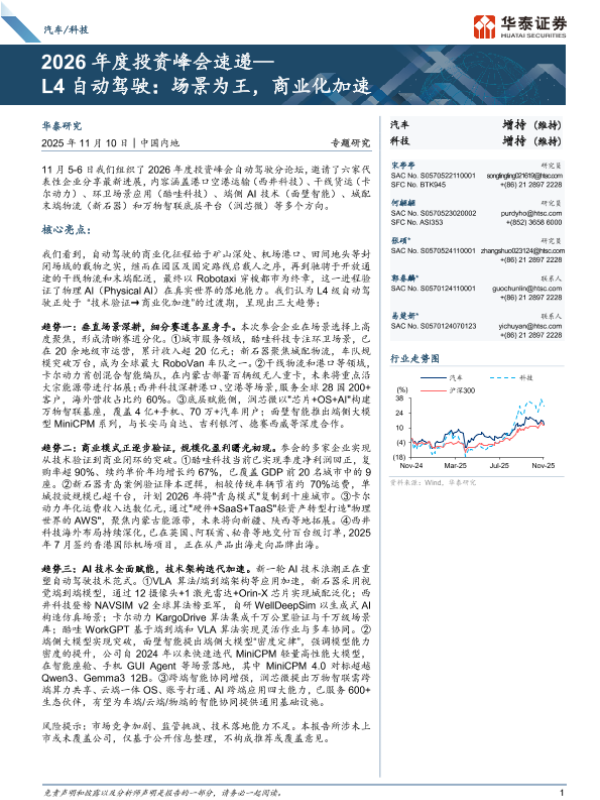 【华泰证券】【202511】2026年度投资峰会速递—L4自动驾驶:场景为王,商业化加速-22页 证券期货研究报告