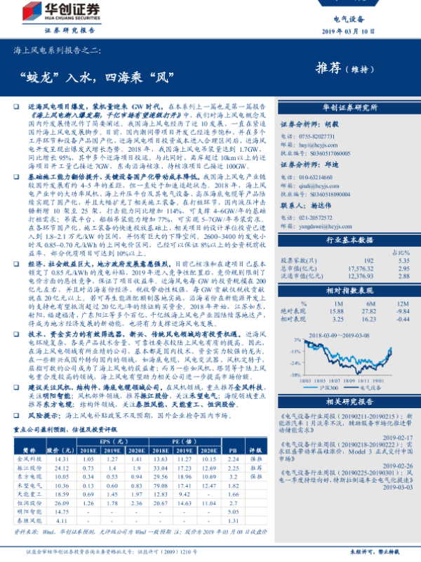 【华创证券】【20190310】海上风电系列报告之二:“蛟龙”入水,四海乘“风”-36页 行业研究