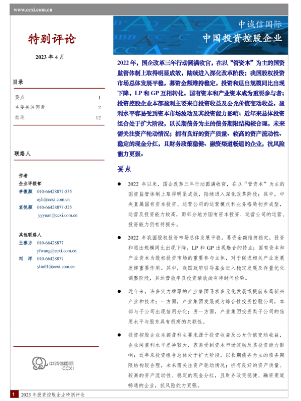 【中诚信国际】【20230401】中诚信-中国投资控股企业特别评论 2023.4-13页 行业研究