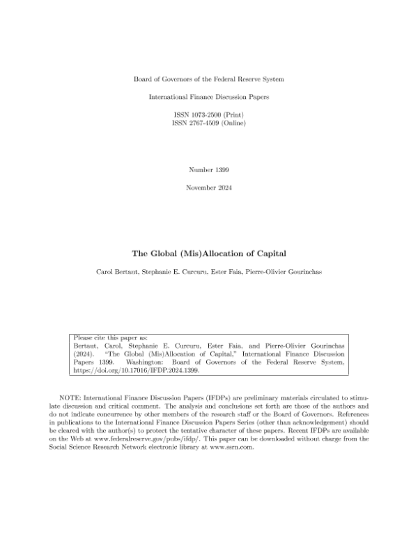 【Board of Governors of the Federal Reserve System】【202411】The Global(Mis)Allocation of Capital-42页 学术论文